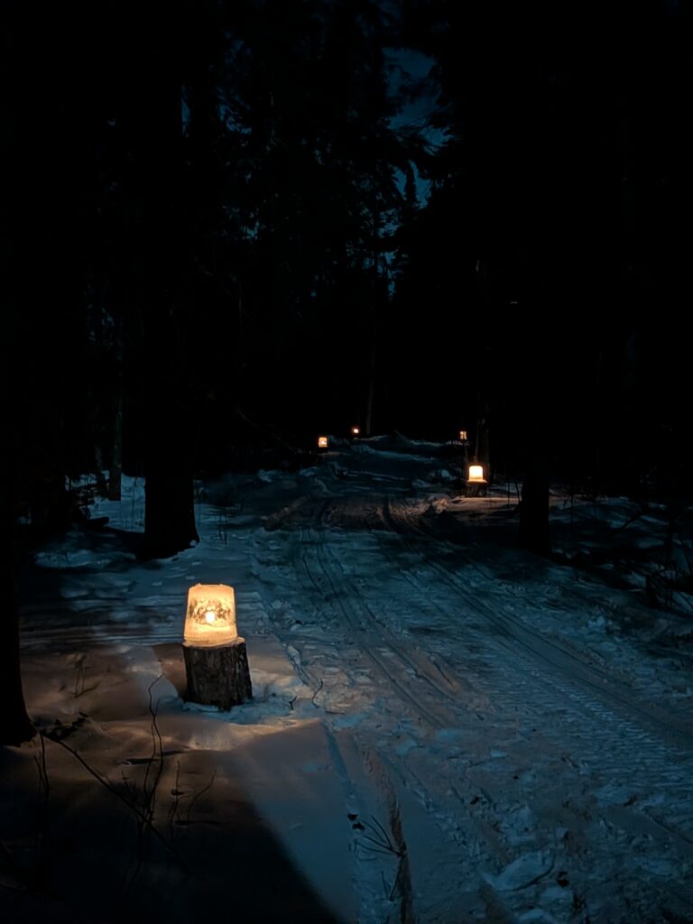 While we were on our vacation last week, I was inspired to do a lantern making project. It was -15°, and I’ve always wanted to make ice luminaries. It’s something that my husband’s grandfather had done and a warm memory for my husband. I made well over 15 lanterns and lined a wooded path with them. It was simple and beautiful — lighting each candle one by one, then blowing them out again one by one. There was something unexpectedly cathartic about it. The quiet. The repetition. The glow. The sense of release.
